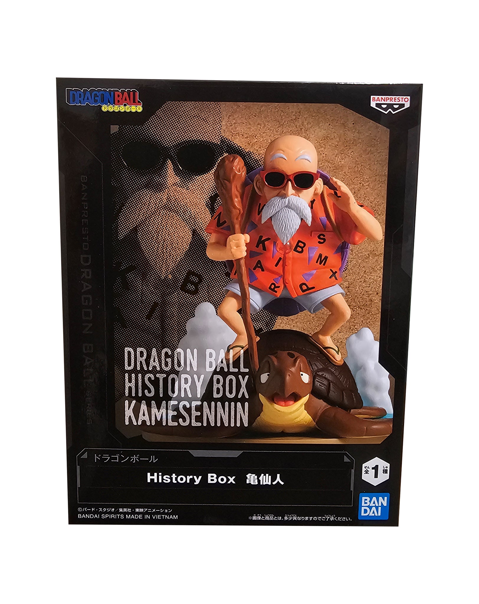 Classic statue of Master Roshi (Kame Senin) from the legendary anime Dragon Ball. This amazing statue is launched by Banpresto as part of their latest History Box statue.